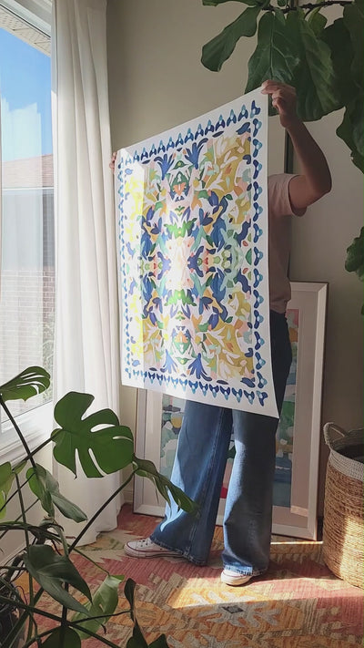 "I found Nancy’s art on Instagram; it instantly caught my eye. I’m renovating my kitchen and wanted bursts of color that move with you through the space.